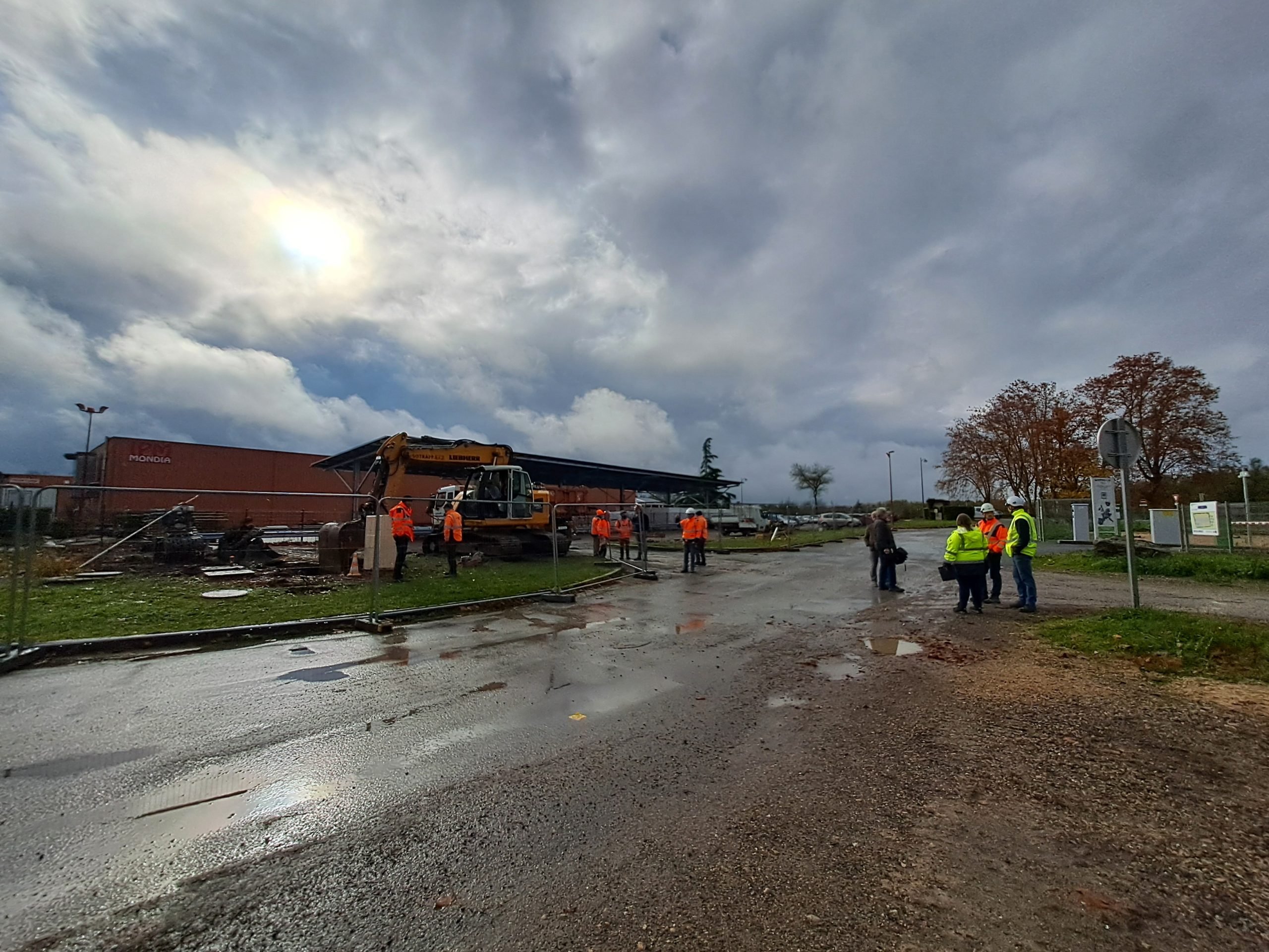À l'occasion d'une réunion de chantier organisée sur site, nous avons pu constater l'avancée des travaux des ombrières photovoltaïque. Les fondations ont été réalisées et le montage des structures a bien débuté et continuera durant 2 semaines encore. Le chantier se poursuivra avec la pose des panneaux surplombant les ombrières et les travaux électriques.