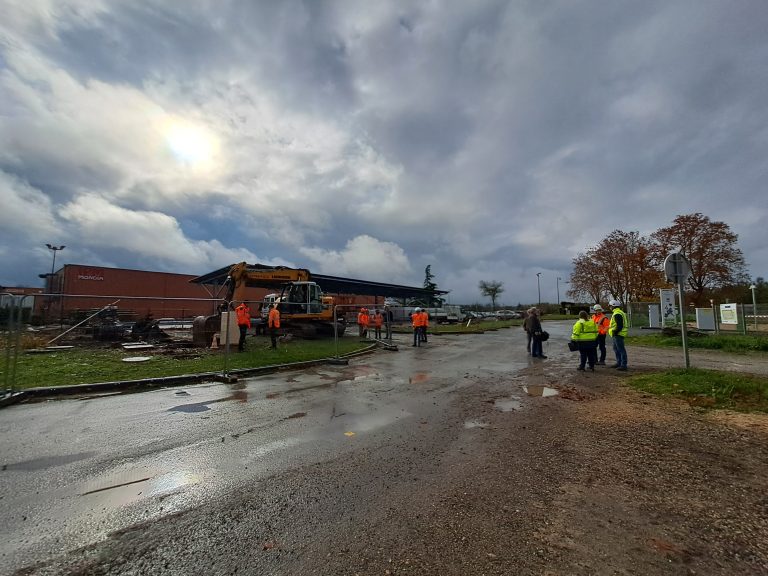 Le chantier de construction des 8 ombrières photovoltaïques du parking privé de la commune de PONT-DE-VAUX a débuté. Les premières interventions portent sur les travaux préparatoires, tel que l’installation de la base vie, le démarrage des terrassements pour les fondations, le coulage du gros béton, la mise en place des ferraillages, puis le coulage des premières semelles.
